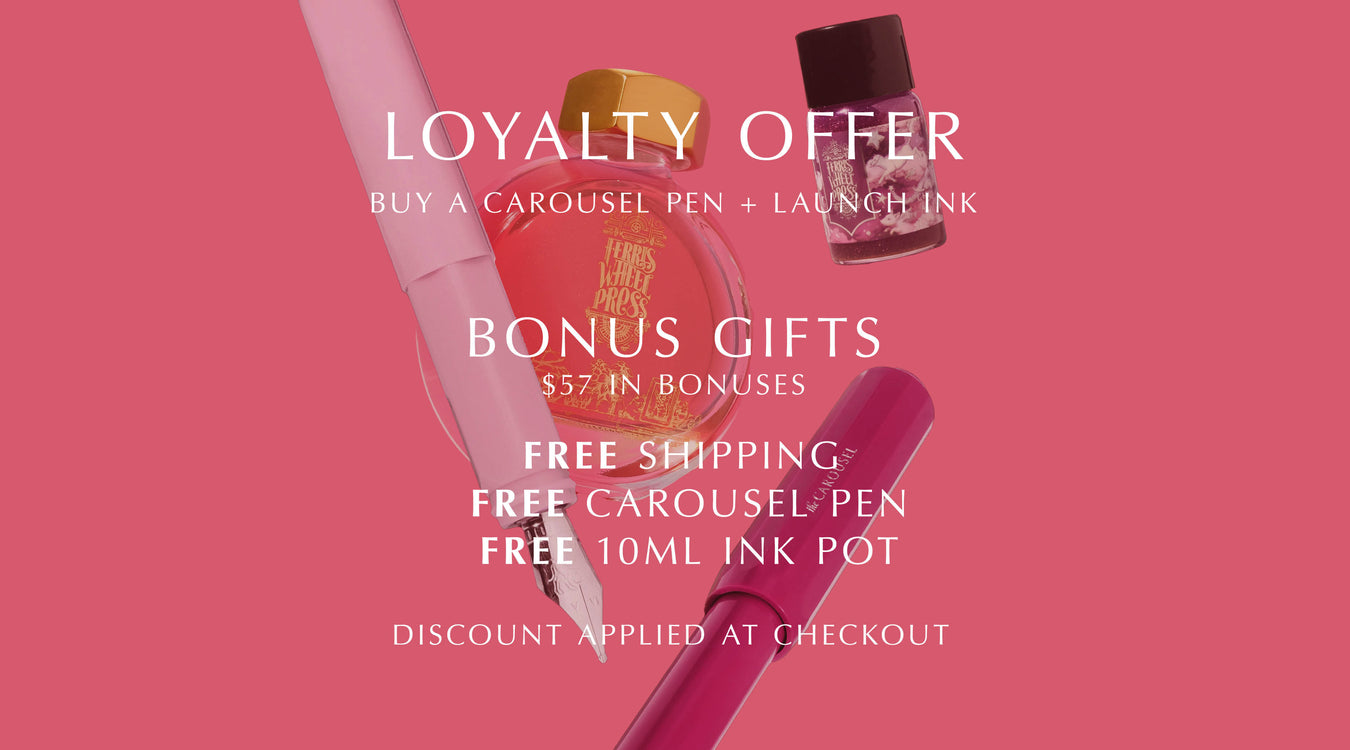 Description Limited quantities available. The Harlequin Dream Limited Edition Carousel Fountain Pen continues the story of the Everyday Collectio...
