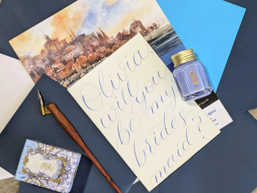 Drawing inspiration from the timeless wedding tradition of incorporating something old, something new, something borrowed, and something blue into the big day, this calligraphy ink represents the elegance and sentimentality of every bride's special journey.